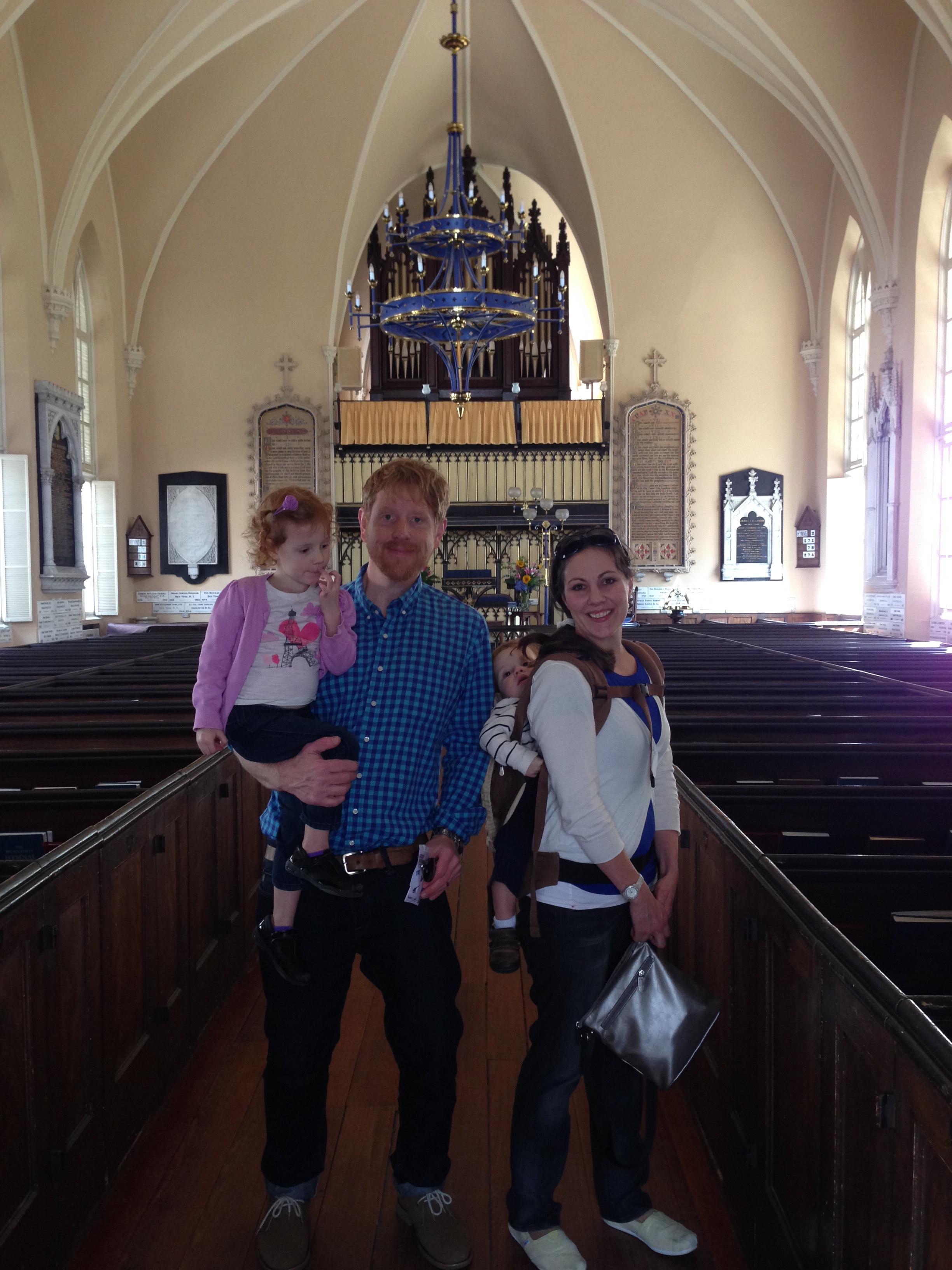 We got to take our picture in this beautiful church, which was exciting for Donnette and I, though maybe not so much for Oliver, as he fell asleep before we’d left the building. Isn’t that chandelier amazing! Who says all protestants were austere?
