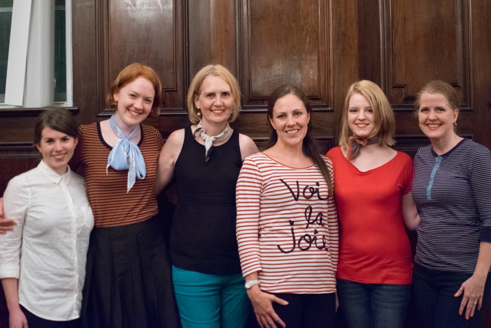 Unfortunately, for me, I tend to judge all events by the photos, and there were none to document the beautiful decorations, nor the food. However, I did get one, at the end of the night, of some of the amazing ladies at Hill City, showing their support in striped Breton shirts and French Scarves.